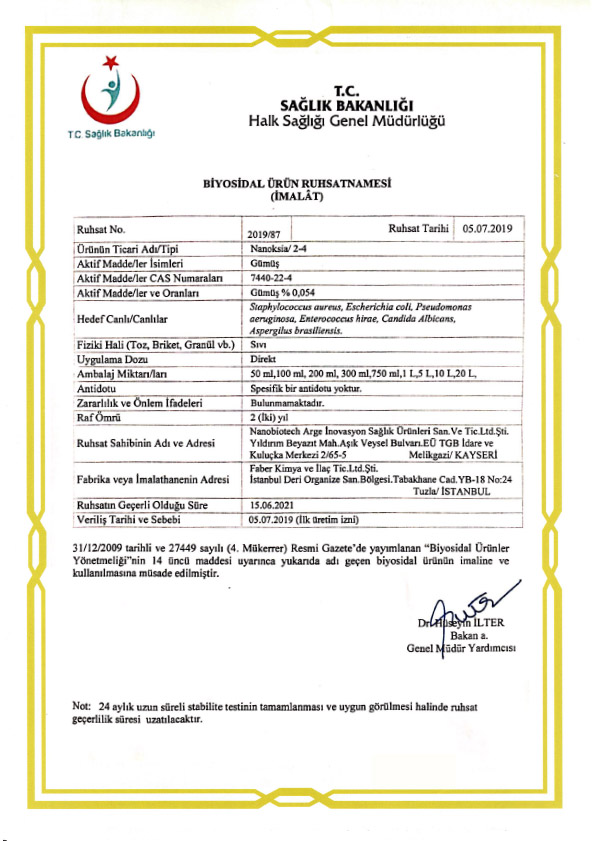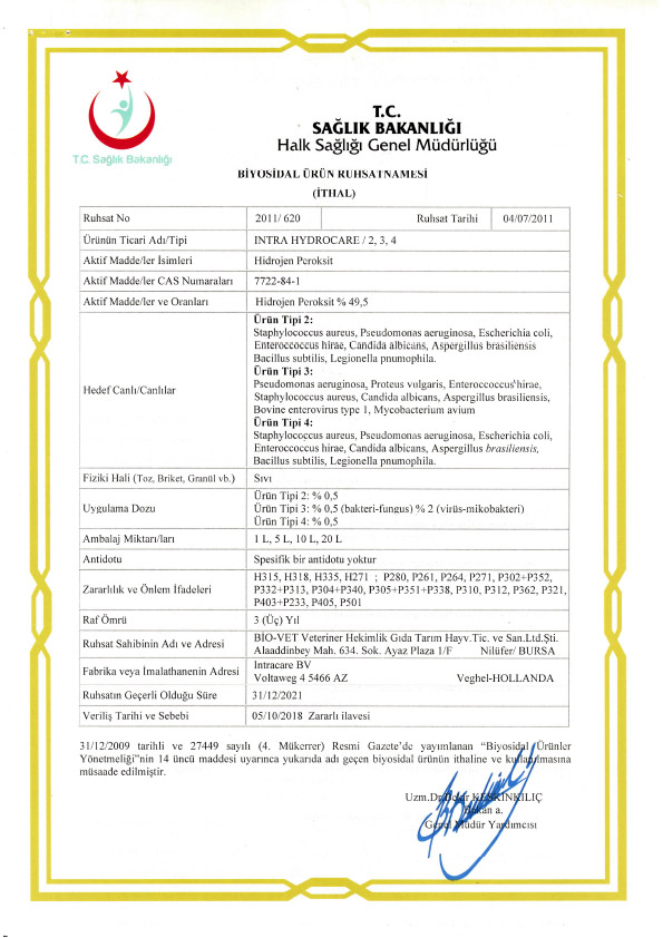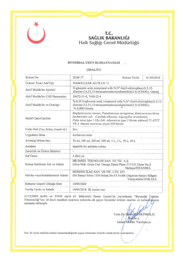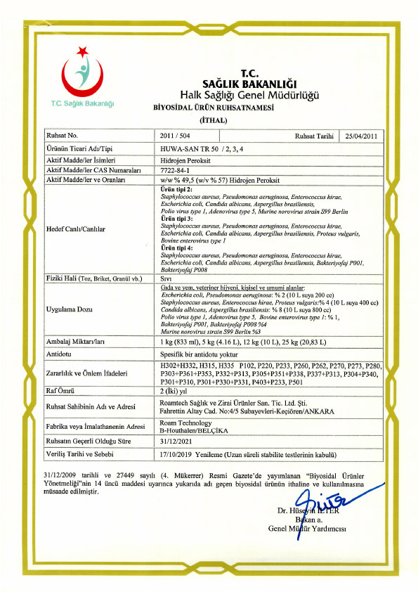 T.C. Sağlık Bakanlığı Onaylı Biyosidal Dezenfektan Ürün Ruhsatnameleri